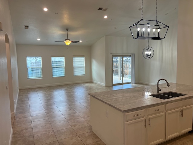 Immaculate and Updated Lennar Home in Clovis School District! The home features 3 bedrooms, 2 beautifully updated baths, and an open concept floor plan. Remodeled kitchen includes granite countertops, stainless steel appliances, and sink, a gas stove, a walk-in pantry, new fixtures, and a grand island with a breakfast bar. The kitchen opens to the dining room and great room with recessed lighting and large tile floors. Beautiful and low maintenance backyard with synthetic lawn and large stamped concrete patio. Energy efficient with solar benefits. Walking distance to the local park and zoned for Clovis Unified Schools. Fresh Paint!